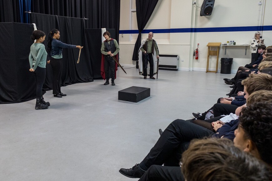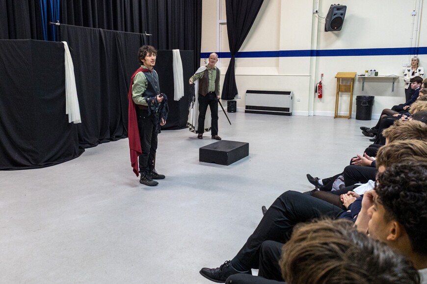 The cohort were an outstanding and engaged audience – asking some wonderfully insightful questions ahead of their assessment on the play. The Globe Players commented on how impressed they were by student comments and questions about the text and characters!