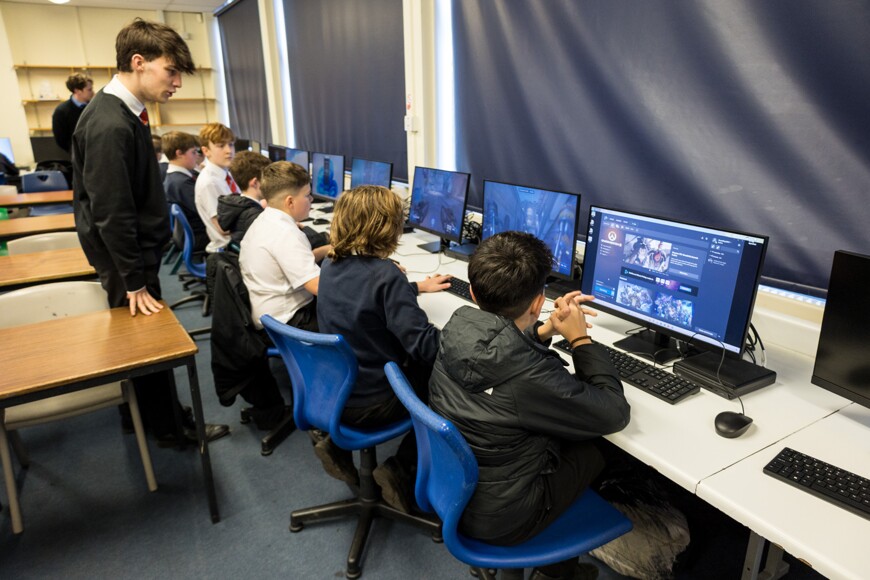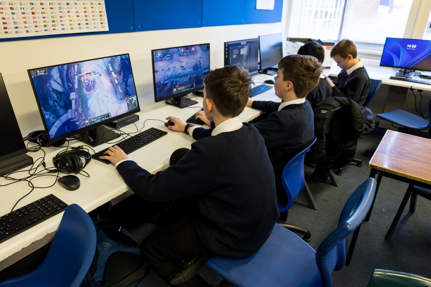 First up we've got some photos from board games club, a new club that started in September, run by Mrs Oehlman and Mrs Lovegrove. Look at that cupboardful of games! And by request, the club has been extended to include Lego building. Second up is Esports club, run by Mr Dolding, Mr Braganza, and Mr Coombs. It has proven so popular it has taken over a second computer classroom. Students have the option of playing League of Legends, Overwatch 2, or Valorant. Tournaments are played in groups of five both between Court Moor students, and one tournament has already been played against The Vyne School.