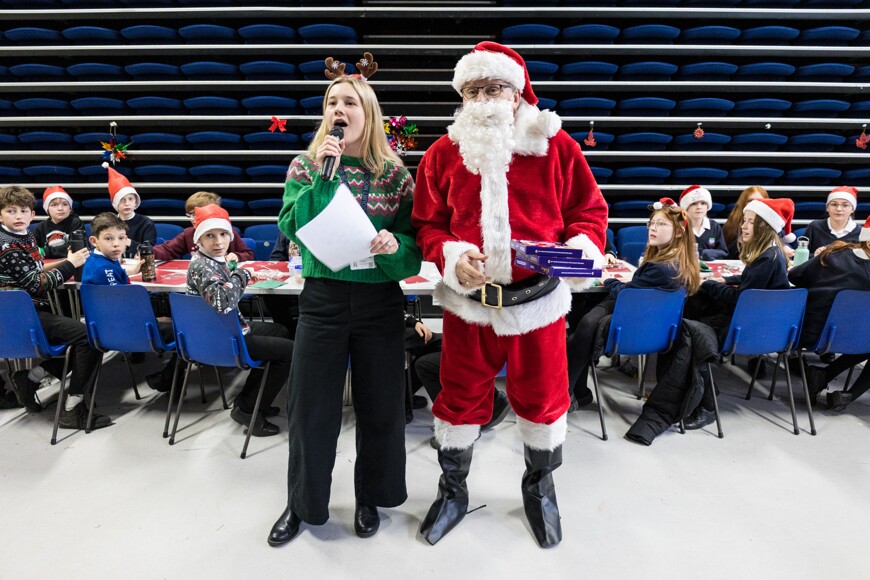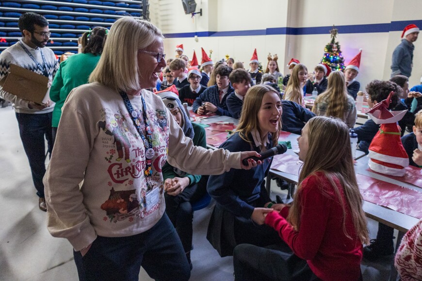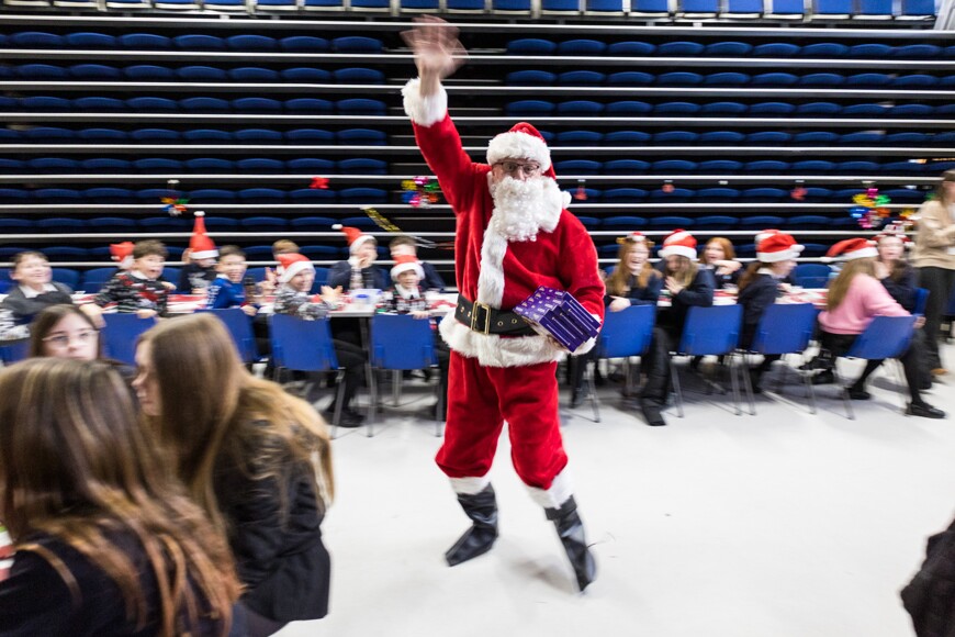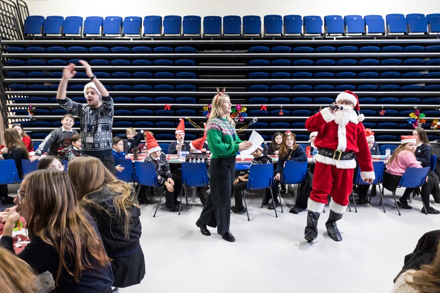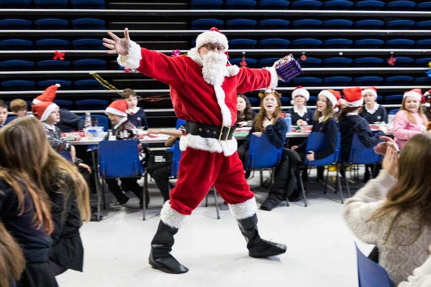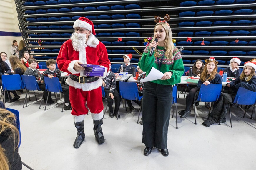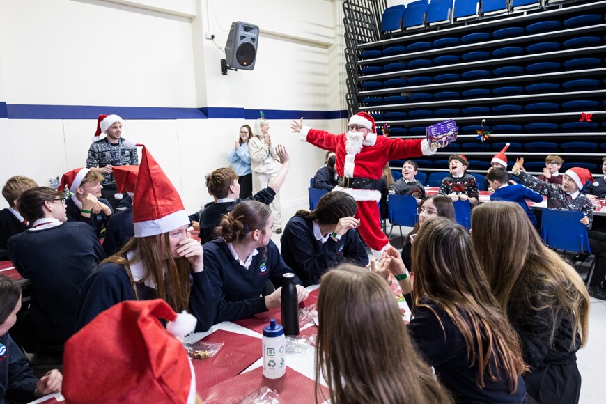 Today it was Everest and Nile's turns, with years 7-10 in the hall, and year 11 got their own special party in the gym. Year 7-10 had Christmas karaoke and a visit from Father Christmas himself, who gave out prizes to the students with the most house points, and the best dressed. Year 11 also had quizzes, snowman wrapping, and more!