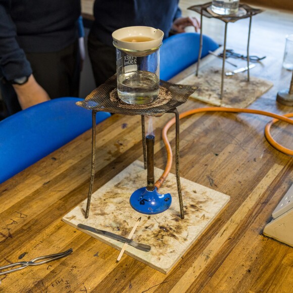 This afternoon at science club the students have been making a natural form of aspirin! Students took bark from the school's willow tree, boiled the bark to extract the natural aspirin (salicin), and then heated the resulting solution over a water bath to crystalise out the salicin.